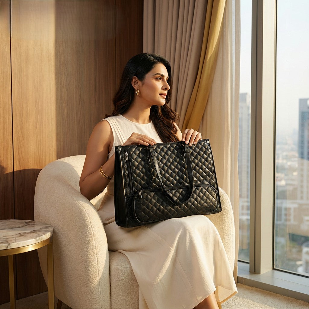I absolutely adore my Zelro quilted tote! The padded laptop compartment keeps my device safe during my daily commute.