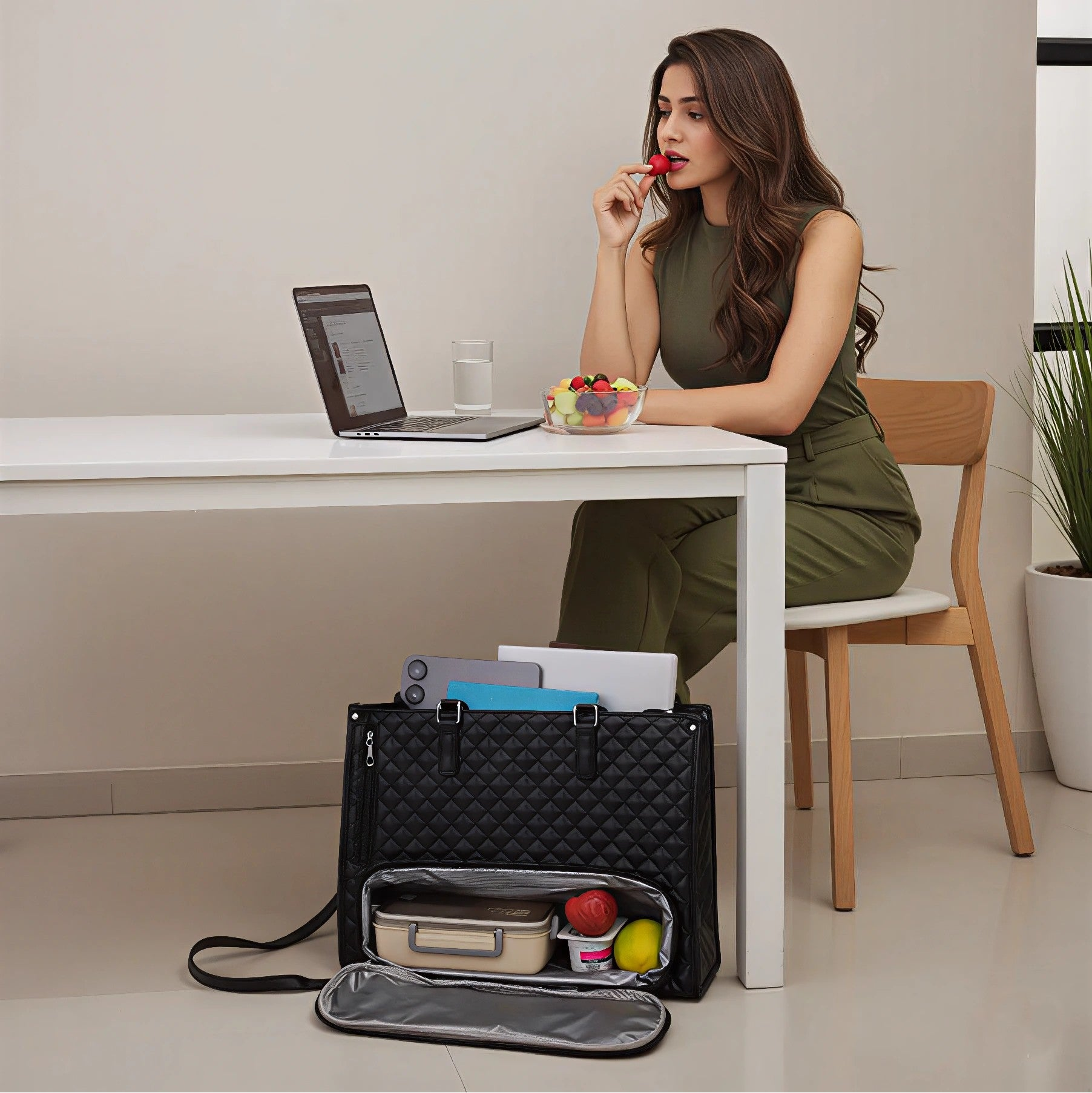 Grab your laptop and lunch in style—this quilted tote keeps your tech secure and your meal fresh, so you can conquer the day with a smile and a snack on hand!